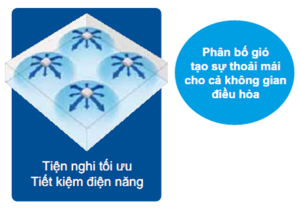 Gió được thổi ra từ các miệng gió ở góc dàn lạnh, độ thoải mái sẽ lan truyền rộng rãi hơn.