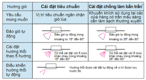 Lưu ý: Hướng gió được cài đặt ở vị trí tiêu chuẩn khi xuất xưởng. Vị trí có thể được thay đổi bằng điều khiển từ xa.