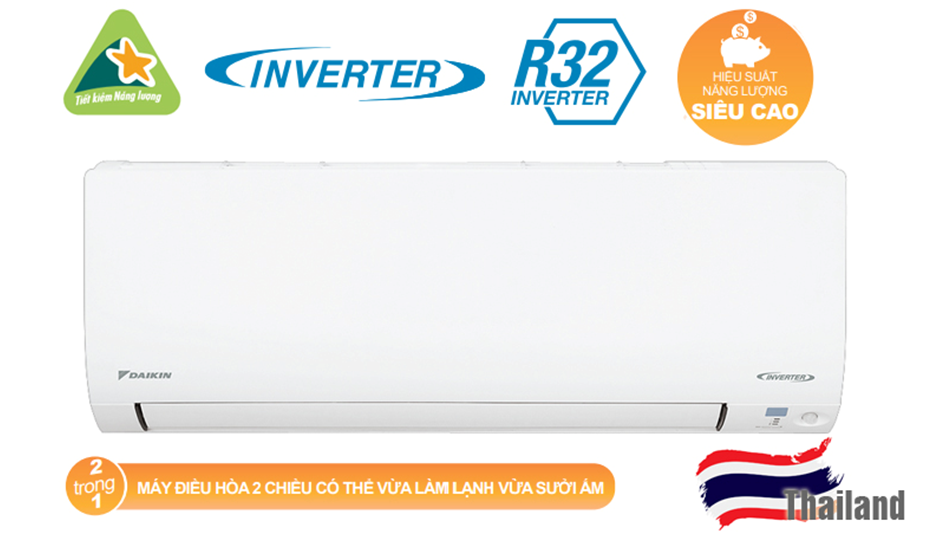 Daikin – Thương hiệu máy điều hòa Nhật Bản. Máy điều hòa Daikin 12000BTU inverter 2 chiều FTXV35QVMV được được sản xuất, nhập khẩu từ Thái Lan. Đây là nơi quy tụ sản xuất của các thương hiệu điều hòa hàng đầu trên thế giới: Panasonic, Mitsubishi Heavy, Toshiba…