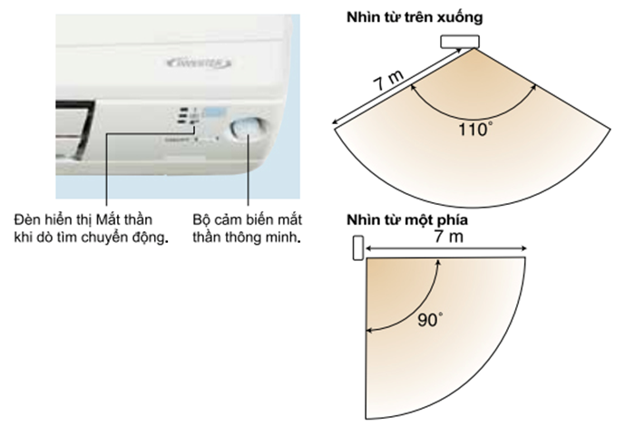 Mắt thần thông minh ngăn hao phí điện năng bằng cách sử dụng cảm biến hồng ngoại phát hiện chuyển động của người trong phòng. Khi không có người, mắt thần thông minh sẽ tự động tăng nhiệt độ lên 2 độ C để tiết kiệm năng lượng. Trong trường hợp chúng ta ra ngoài mà quên tắt máy thì chức năng này làm giảm lãng phí điện năng hiệu quả nhất. Dễ dàng sử dụng chức năng này bằng điều khiển từ xa.